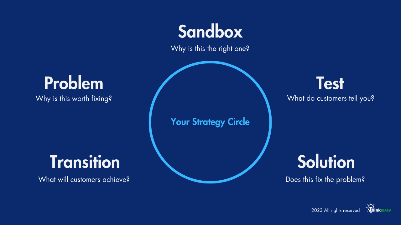 Your initial strategy blueprint is your first attempt to build a solution that combines your market research with a test solution to fix a BIG customer problem.